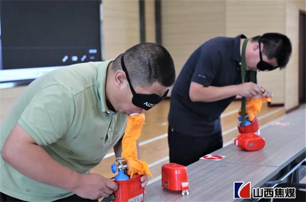 将自救器移到前面,扳开挂钩、取下上盖、展开气囊、拔掉口具塞,把口具放入唇齿之间,咬住牙垫紧闭嘴唇,逆时针旋转打开气瓶开关……在培训教室,返岗职工接受安全应知应会及事故案例培训后,进行了自救器使用方法实操演练,现场气氛热烈而有序。